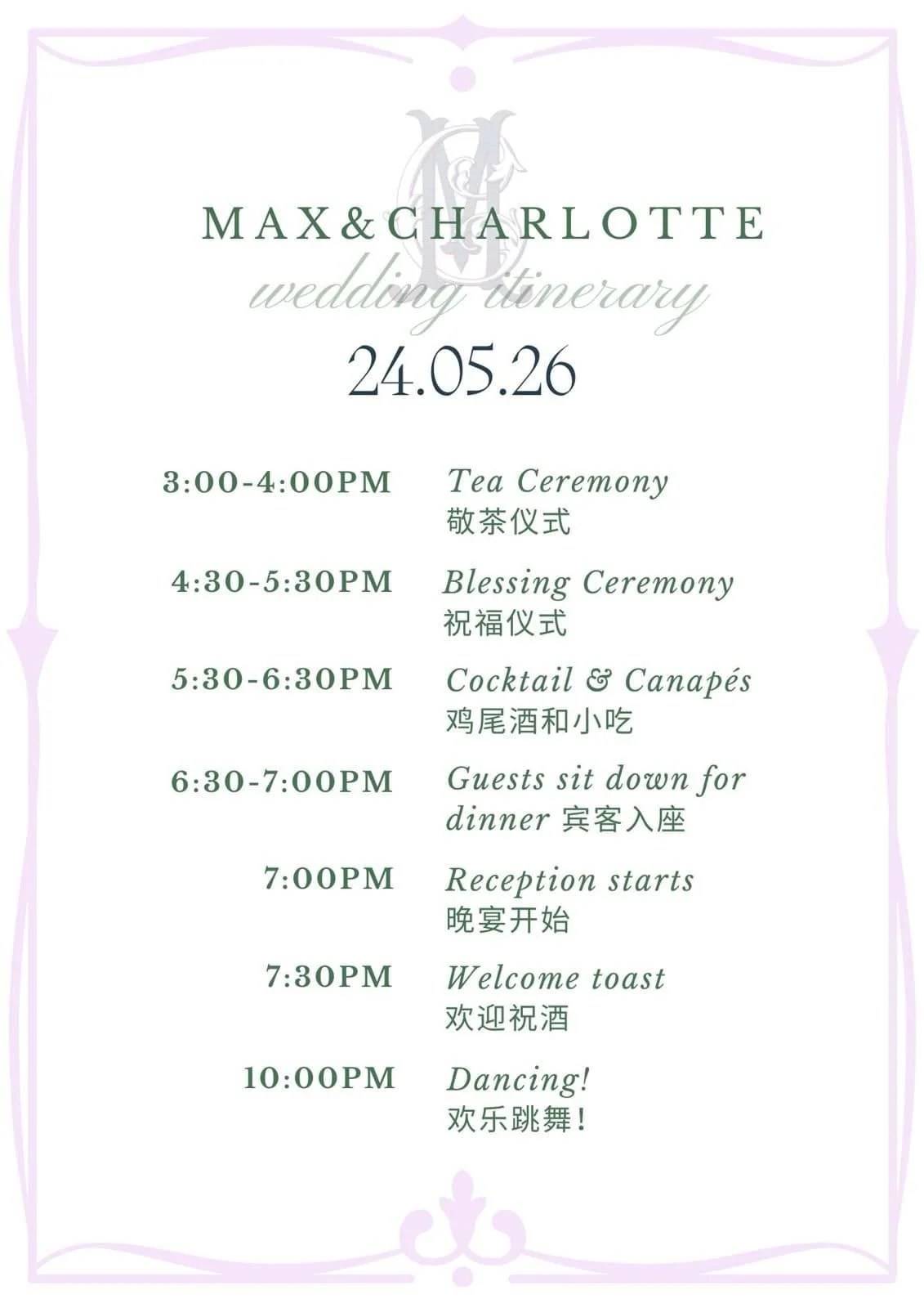 在这个特别的日子,我们诚挚希望挚爱的亲友们能身着配合我们主题色系的服装出席。